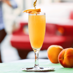 Adjuk a barack nektárt pezsgős poharakba és töltsük fel proseccoval.